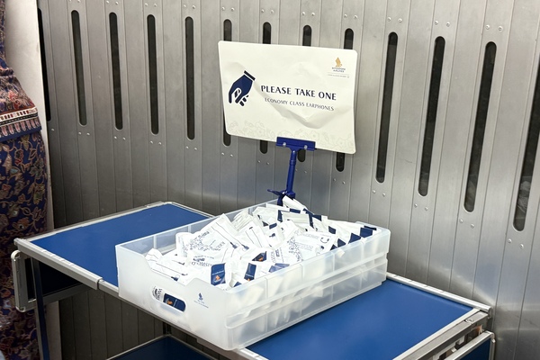 機内搭乗前にイヤフォン(機内のモニター用)が置いてありますので、ご利用される方はセルフでお取りください。