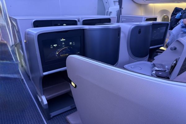 ・一方で往路日本ーモルディブ間のビジネスクラスの配列は 1 - 2 - 1(中央列が2席シート)となります。