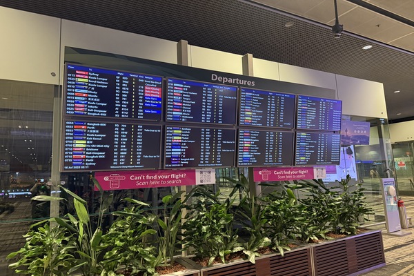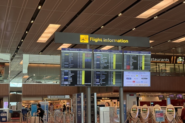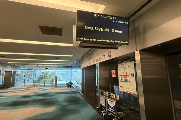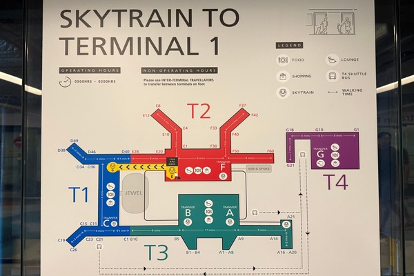 ・チャンギ国際空港はT1(ターミナル1)からT4(ターミナル4)まで区切られており、ターミナル間は全てスカイトレインで移動を行います。搭乗口は当日のスポット利用状況にもよって変わりますので、電光掲示版を見ながら余裕をもってご移動ください。