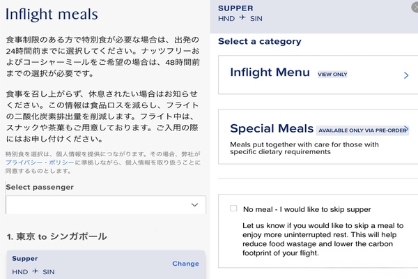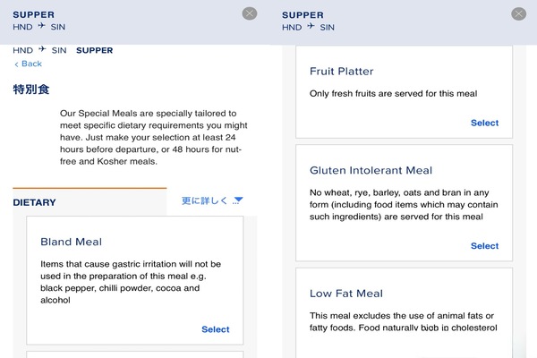 ・先にご案内の通り、シンガポール航空のアプリをダウンロード→ご自身の予約を紐づけて頂くと、ご搭乗前に機内のお食事情報を閲覧できます。
