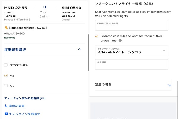 ~ シンガポール航空 オンラインチェックイン方法 ~