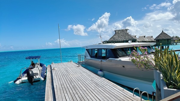 タヒチ島・ファアア国際空港から国内線で約50分、ボラボラ島空港からは専用ボートで約20分。