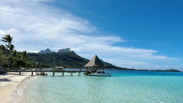タヒチ島・ファアア国際空港から国内線で約50分。ボラボラ島空港からはボートで約20分。