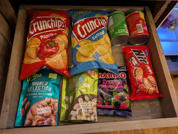 こちら以外にも、引き出しの中にはスナック類が置かれていました。