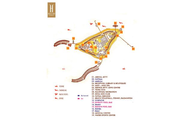 こちらのリゾートの魅力は、1島1リゾートのモルディブには珍しく、桟橋で繋がった姉妹リゾート「ファルマフシ」の施設も利用可能なところ。