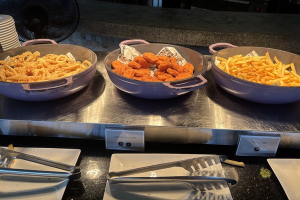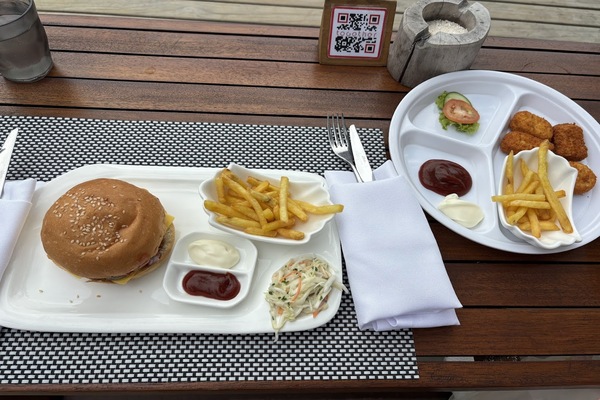 軽食やお飲み物をたくさん取って、水上飛行機を待ちます。