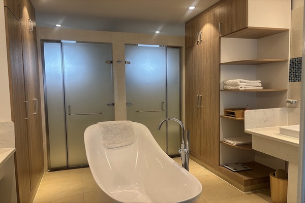 バスタブが中央にあり、シンクも2台ついています。