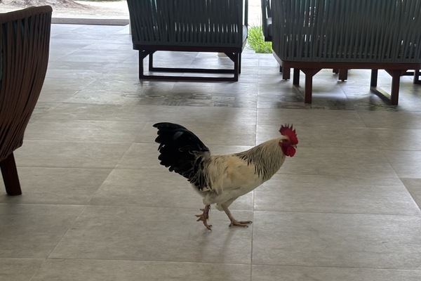 チェックアウトの際フロントにいるとニワトリが目の前を歩いて行きました。(笑)