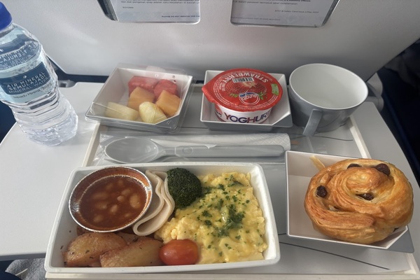 飛行機では成田~クアラルンプール間1回、クアラルンプール~マーレ間1回機内食の提供があります。