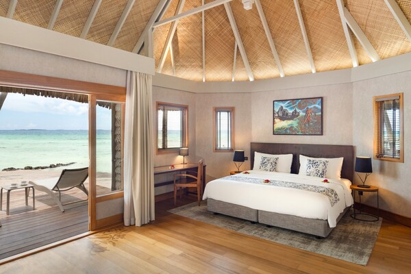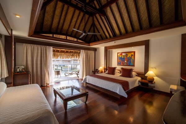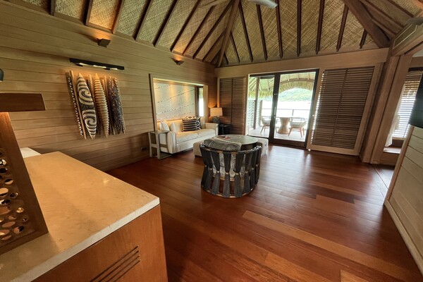 ・ビーチバンガローに関しては少し手狭ではありますが、(ビーチバンガロー:55㎡/水上スイート:93㎡)お部屋内はタヒチらしいナチュラルな雰囲気です。