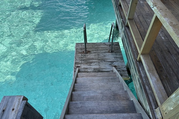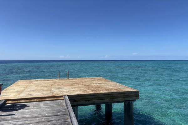 水上ヴィラの一番奥まで来ました。海以外に見えるものが何もないです。。