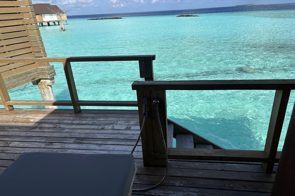水上ヴィラの前は遠浅の海が広がっています・・!