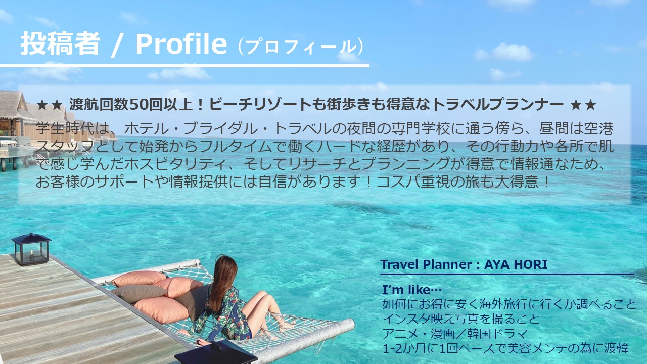 トラベルプランナーの「堀 杏耶」です。