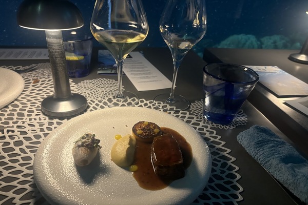 水中レストランでのお食事は全てのお食事にキャビアが入っておりまさに贅をつくすお食事です。