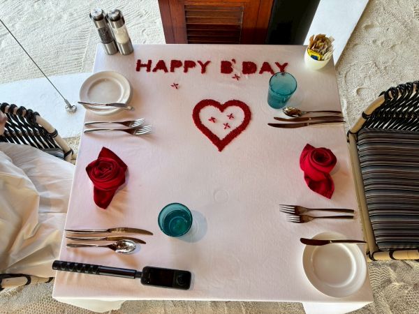 誕生日サプライズは朝と夜2回もしていただき、夜は、スタッフさんが現地語でハッピーバースデーを歌ってくださり、とても幸せな特別な思い出になりました。