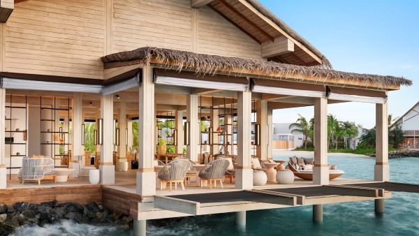 レセプションエリアの隣に建つ、南国リゾートらしい雰囲気の水上ラウンジ!
