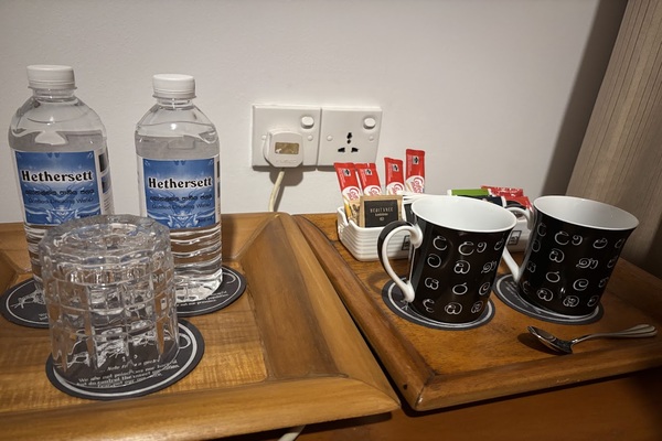 お水・コーヒー・紅茶は無料です。シンハラ語のマグカップがかわいいです。