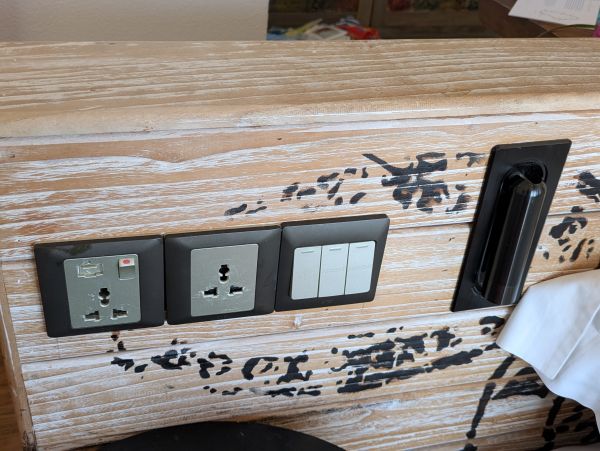 ベッド横のコンセントはユニバーサル式で、それなりに数はある印象です(計3つ)。