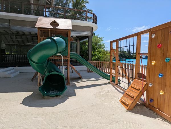 外には子ども用の、大きな滑り台が!
