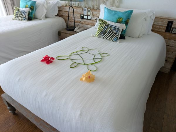ベッドデコレーションはカメとお魚の形でとってもかわいかったです°˖✧