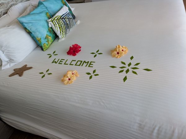 ベッドには、ウェルカムデコレーションが行われておりました。