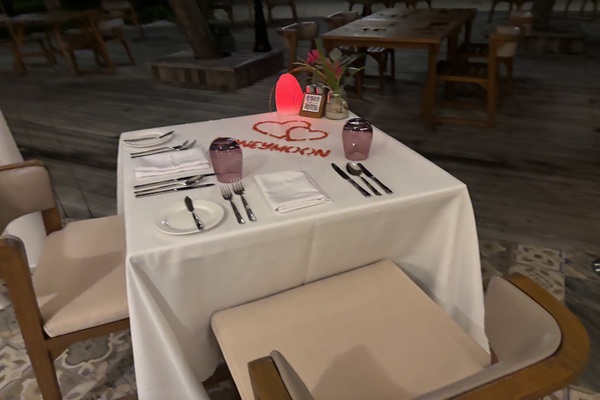 〇 ハネムーンディナー(アラカルトレストランでのテーブルデコレーションセッティング)
