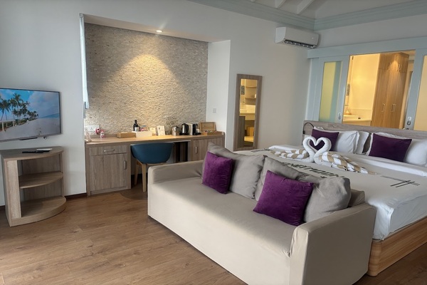 サンセットは見えませんが、モルディブのコロコロ変わる空の色はどの部屋からもお楽しみいただけます。