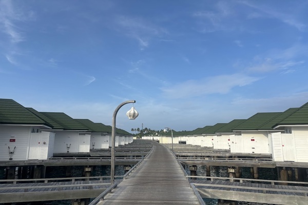 桟橋まではバギーは来ないため、奥のヴィラだとかなり歩きます。