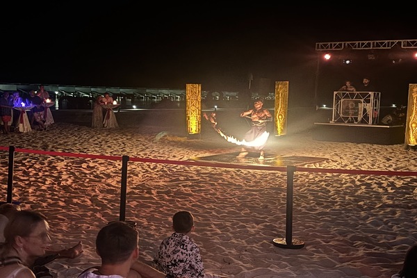 この日はグッドバイブレーションでファイヤーダンスショーが開催されました。始まる時間ギリギリにいったら、待っているお客さんがたくさんいて、座る席もありませんでした(笑)