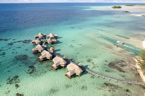 空港があるタヒチ島からフェリーで30分-45分ほどで行けるのにも関わらず本格的な水上バンガローが楽しめるのもGOODポイント!