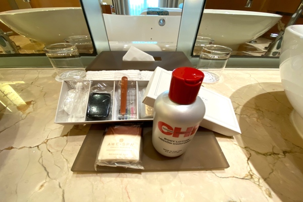 ボディークリームも用意されています。石鹸とボディークリームはパレスリゾーツのスパブランド「AWE・SPA」のものです。