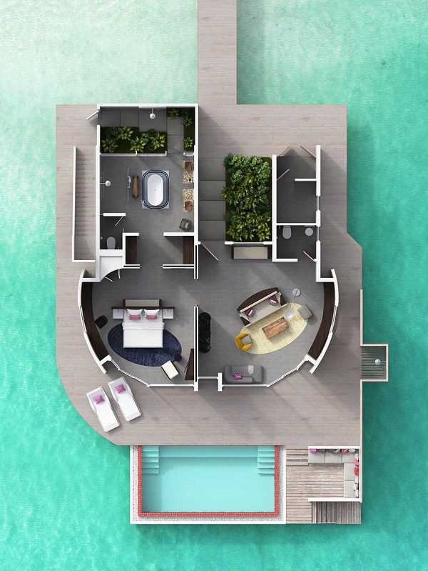 そのため、丸見えになってしまう該当のお部屋は価格を下げ「プール付き水上ヴィラ」となり、
