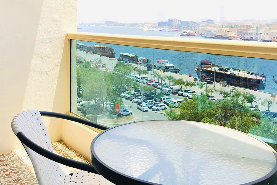 バルコニーからドバイクリークの街のパノラマビューを楽しめるお部屋タイプ。豪華な家具と細部へのこだわりで王族のような気分になるデザインです。