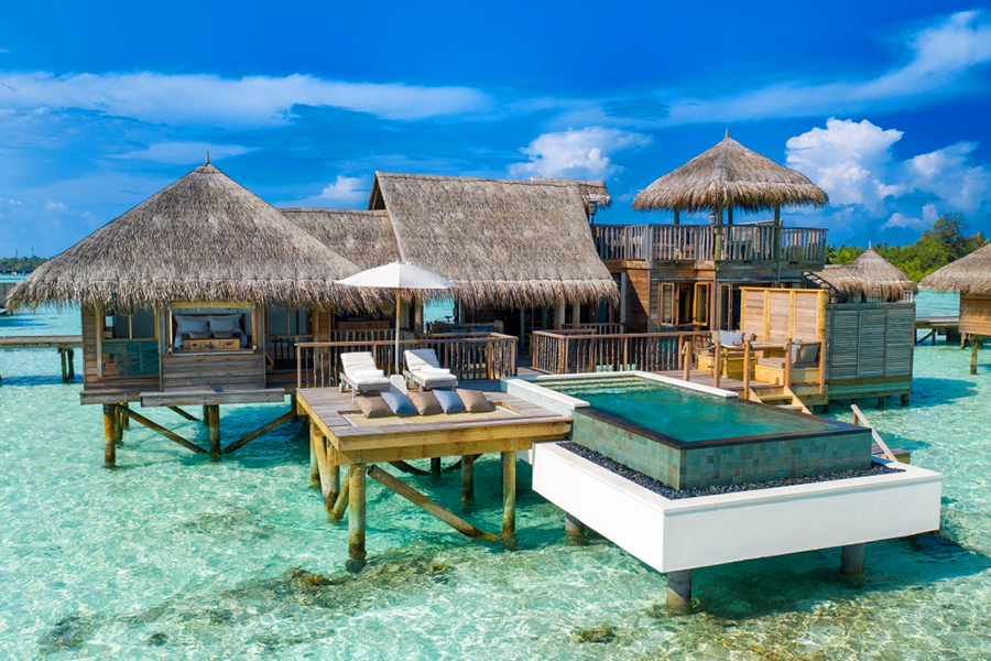 2019年12月に改装工事を経て、リニューアルオープンいたしました。このリゾートでは「No News, No Shoes」がコンセプトでエコ&ナチュラルな滞在が出来ることでも有名な高級リゾートです。滞在中は靴を脱ぎ裸足で自然を感じながらお過ごしください ♪ また、トリップアドバイザーによる「一生に一度は泊まってみたい世界のホテルランキング」で第3位にも選ばれている人気リゾートホテル! 全室水上コテージのスイート仕様で、中には橋でつながれていない本当の意味での「海に浮かぶコテージ」のお部屋もございます。総客室集はたったの44室でプライベート感抜群!周囲は遠浅でモルディブらしい壮大な海景色が広がっているのも人気のポイントです。リゾート中にはオーガニックガーデンを持ち、お食事もおいしいと評判。新婚旅行でのご利用には特にお勧めです。