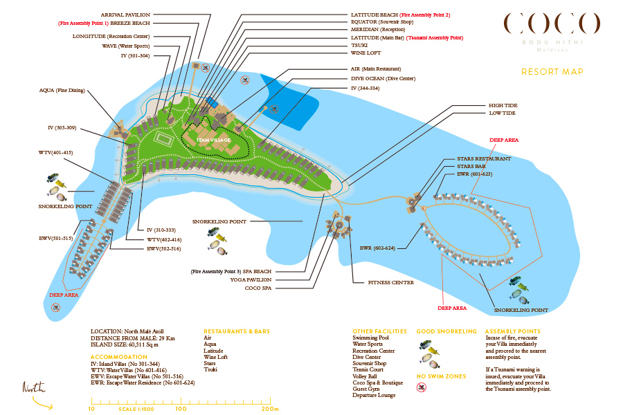 ココ ボドゥヒティ は モルディブ 北マーレ環礁 に位置し、スピードボートを利用して約40分で到着するホテルです。