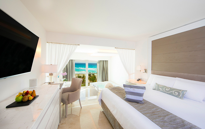 ル ブランはカンクン空港から車で約30分で到着するホテルです。入り口から目の覚めるような白い建物が印象的でロビーに入った瞬間から心が躍ります。大人専用のオールインクルーシブホテルですので、各フロアーの専属バトラーが細やかな気配りをしてくれます。