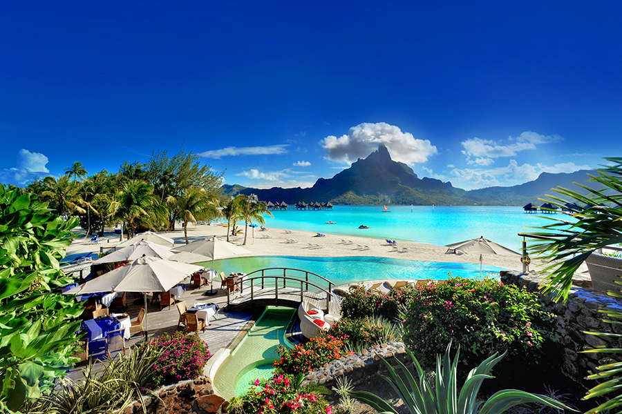 ル メリディアン ボラボラはボラボラ空港より専用ボートを利用して約20分で到着するホテルです。オテマヌ山の真正面に建ち、美しいラグーンに囲まれた素晴らしい景色を眺めることができるリゾートです。