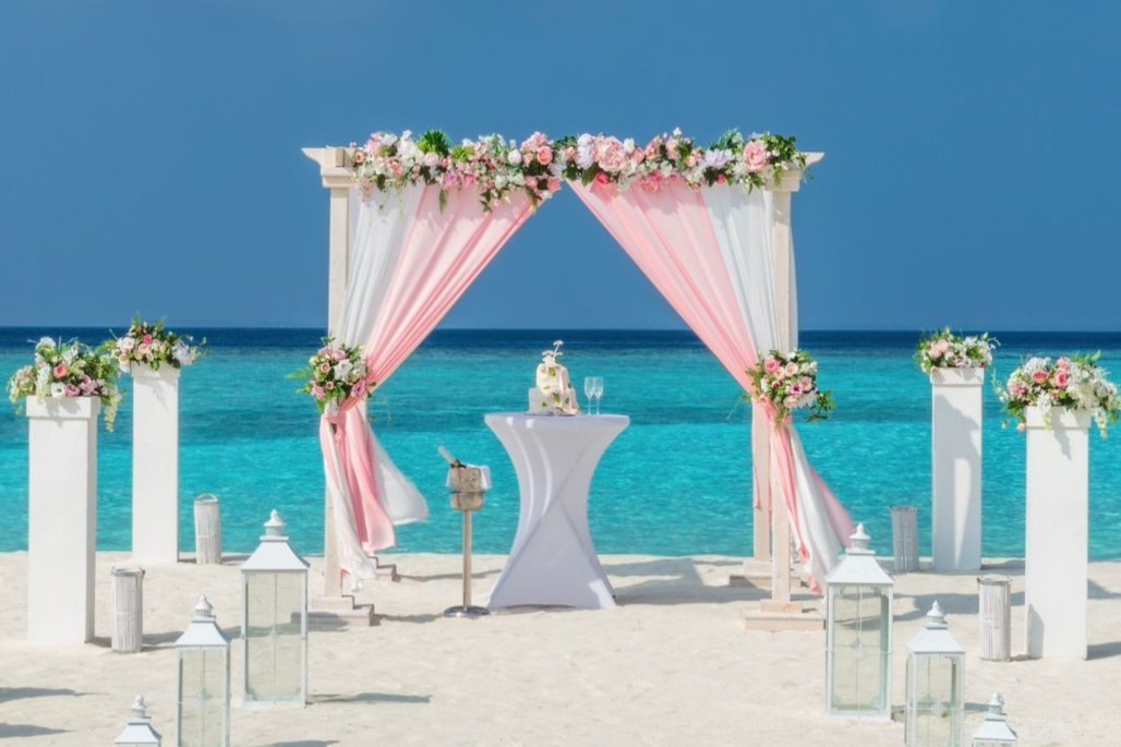 *限定シーズンの特典となりますが、この挙式プランが4泊以上で含まれるのはとってもお得!装飾の色は白・ピンク・青の3色からリクエスト可能です。