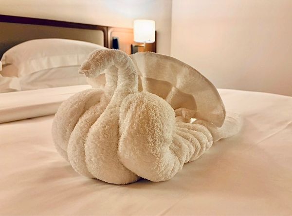ハウスキーパーさんは部屋の清掃に加えてバスタオルを折ってゾウやスワンを作ってくれるというサプライズを見せてくれました笑