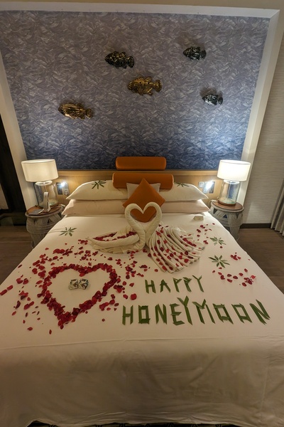 Imraanさんは毎日ベッドメイクの際に、タオルで海の動物を作ってくれたり(これがシュールで可愛くて毎日の楽しみになりました笑)、ハネムーン特典のベッドメイクとバブルバスは一人でこれを作ったのか!と驚くほど豪華で感動しました!